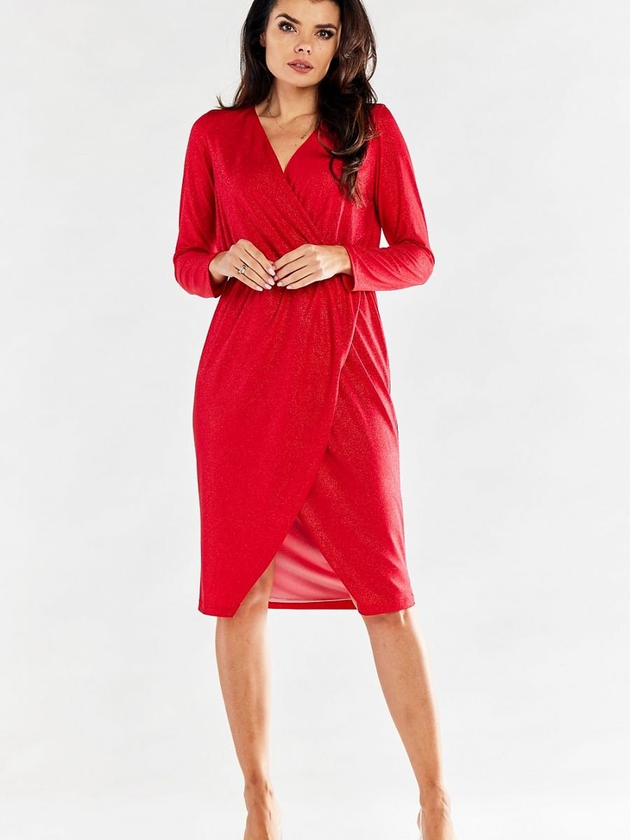 Robe enveloppante avec ceinture élastique, permettant d'ajuster la création à la taille. Manches longues, effilées dans le bas. La robe est faite d'un tissu délicat, avec une doublure élastique. Robe fabriquée en Pologne.