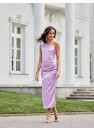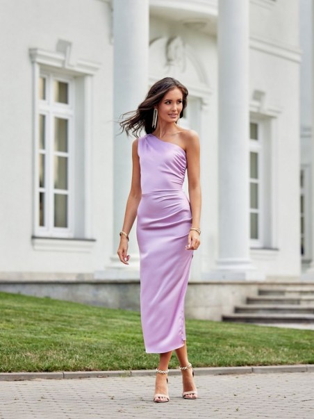 Cette robe midi à une épaule et subtilement fendue à la jambe est confectionnée dans une délicate étoffe de satin. Un pli sur le côté dissimule parfaitement les imperfections. La large bandoulière avec des plis sur une épaule lui confère un caractère unique. Elle se ferme à l'aide d'une fermeture à glissière couverte sur le côté de la robe. Cette robe midi n'est pas seulement élégante, elle est aussi fonctionnelle. La longueur midi confère à la robe un style raffiné et féminin. Cette coupe de robe vous permettra de vous sentir originale en soulignant votre style individuel et attirera certainement l'attention en vous faisant sortir du lot quelle que soit l'occasion. Le produit est fabriqué et cousu en Pologne.