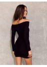 Une mini robe unique qui ne manquera pas d'attirer l'attention en toute occasion. Robe à large encolure se prolongeant par des épaules apparentes et des manches longues. La robe présente des plis décoratifs sur toute la longueur du devant et en partie dans le dos. La robe est en tissu avec des paillettes. Ce modèle de robe est une excellente option en tant que tenue complète, parfaite pour diverses célébrations. Le produit est fabriqué et cousu en Pologne.