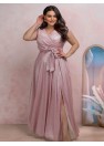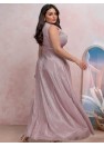 Une robe élégante et brillante dans une teinte de rose sale est un choix parfait pour des occasions spéciales. Fabriquée dans un matériau légèrement chatoyant, elle donne à la tenue un éclat subtil et un aspect luxueux. Le décolleté en V enveloppant met joliment en valeur la poitrine, tandis que la ceinture à la taille sculpte la silhouette, mettant en valeur ses atouts. La jupe évasée avec une fente spectaculaire ajoute de la légèreté et de la sensualité à la robe. Le modèle est fermé par une fermeture éclair dissimulée, assurant un confort de port et un ajustement parfait à la silhouette. Parfait pour les mariages, les bals, les réceptions et autres cérémonies.