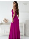 Une longue robe ajustée avec des bretelles réglables, fermée par une fermeture éclair dissimulée. Profond décolleté, bas avec une longue fente. Une proposition idéale pour de nombreuses occasions.
