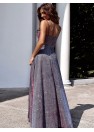 Longue robe à bretelles, avec un profond décolleté en V, cintrée sous la poitrine. Le bas évasé avec une longue fente. Une proposition idéale pour de nombreuses occasions.