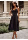 Robe longueur 7/8 à bretelles, avec un profond décolleté en V, cintrée sous la poitrine. Jupe évasée avec une longue fente. Une proposition idéale pour de nombreuses occasions.