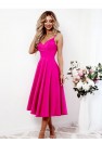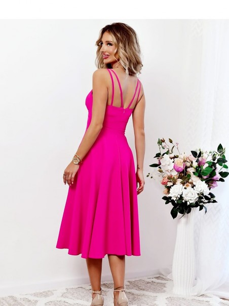 Robe midi à bretelles, avec un profond décolleté en V, cintrée sous la poitrine. Jupe évasée avec une longue fente. Une proposition idéale pour de nombreuses occasions.