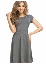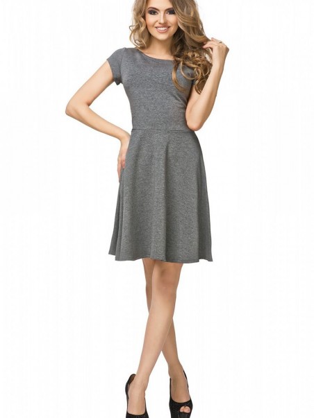 Robe de jour courte cousue dans un tricot de coton agréable à porter. Encolure bateau, manches courtes. Taille coupée, bas évasé. Idéal pour les chaudes journées de printemps et d'été. La coupe met en valeur les atouts de la silhouette de la femme, masquant les imperfections de la silhouette.