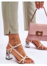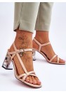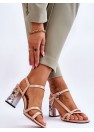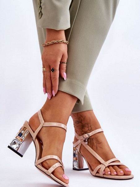 Ces élégantes sandales ont été fabriquées en cuir écologique de haute qualité. Ce modèle est doté d'une fermeture à sangle réglable avec une boucle et une décoration suspendue. Ces sandales à lanières sont extrêmement respirantes et confortables. La semelle intérieure souple en cuir naturel garantit une utilisation confortable. Les sandales sont montées sur un talon aiguille orné de pierres scintillantes.