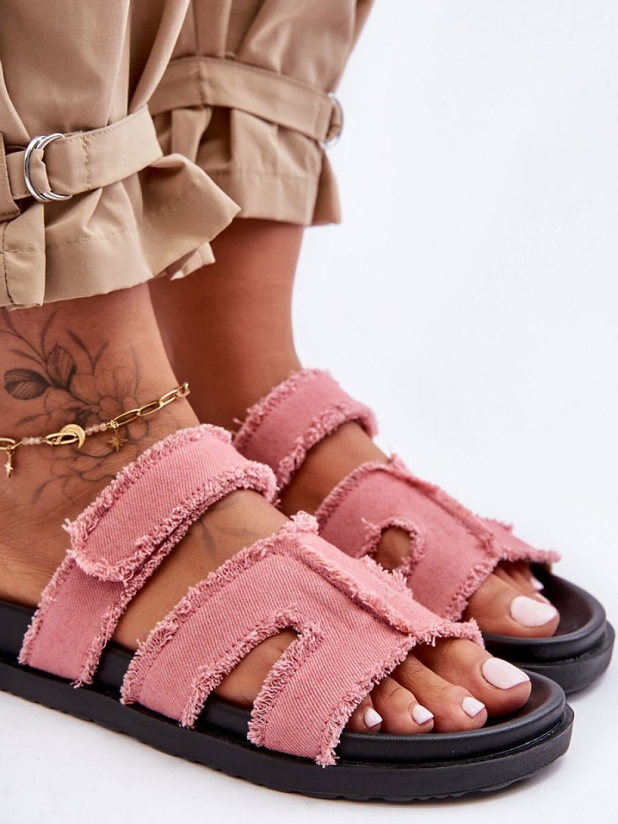 Ces tongs classiques pour femmes sont fabriquées en textile. Ce modèle est doté d'une fermeture velcro supplémentaire, qui permet d'adapter la chaussure à la rigidité de la jambe. Les chaussures sont montées sur une plate-forme en plastique. Ces tongs sont parfaites pour un usage quotidien par temps chaud !