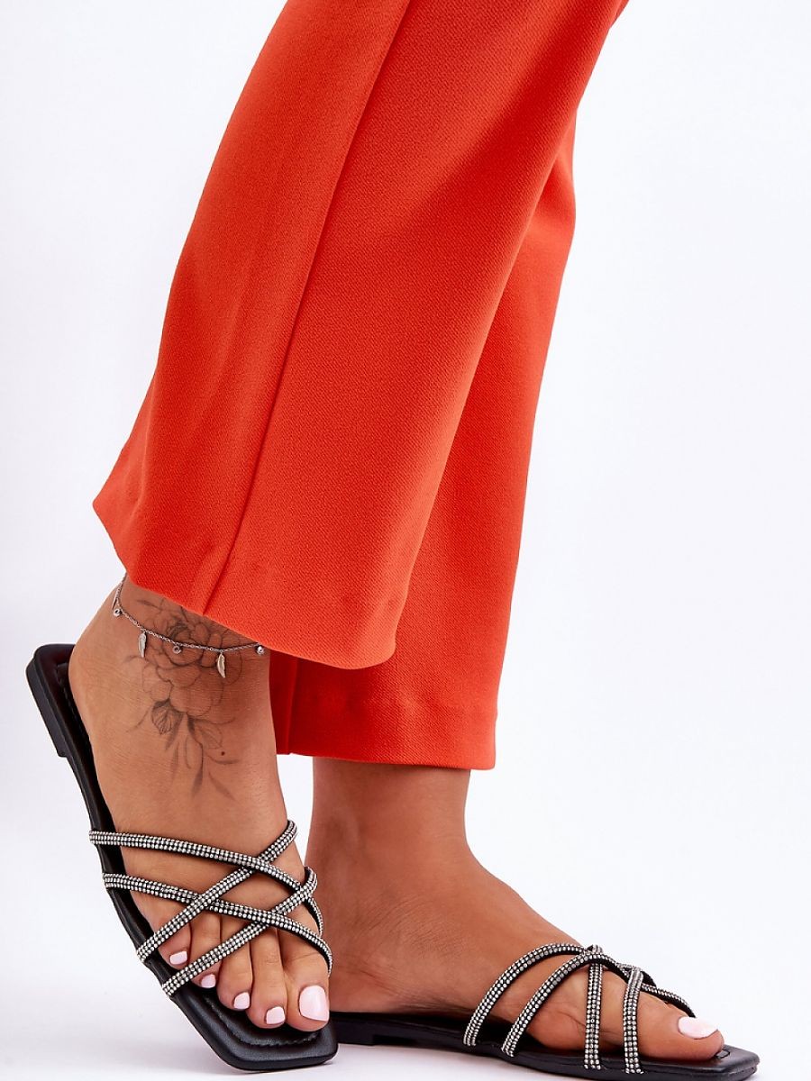 Ces élégantes tongs pour femmes sont fabriquées avec une tige en tissu. Les lanières sur le devant s'entrecroisent et sont décorées de strass imitant des zircons. Les tongs sont dotées d'une semelle intérieure souple et confortable en cuir écologique. Cette chaussure est parfaite pour de nombreuses tenues par temps chaud ! Vous devez absolument les avoir !