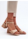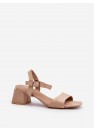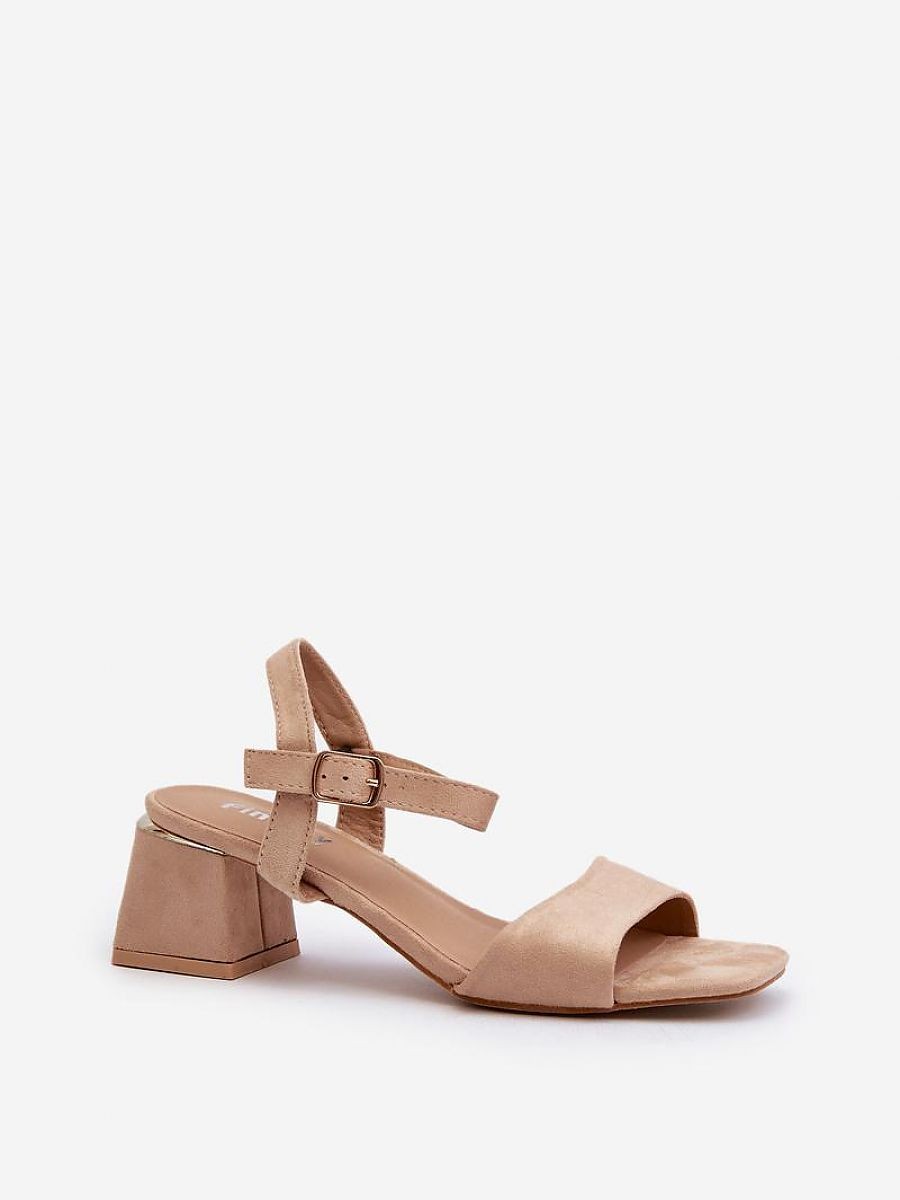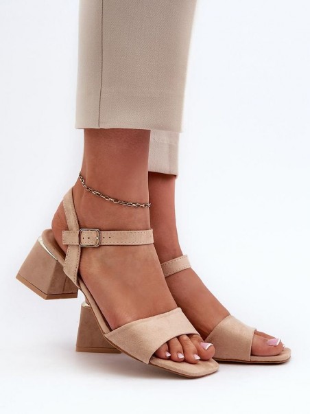 Sandales pour femmes fabriquées en suédine agréable au toucher. Le talon en forme de bloc assure la stabilité. Elles sont fermées par une bride réglable avec une boucle, garantissant un ajustement parfait au pied. Parfaites pour les robes d'été !