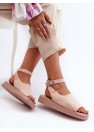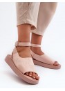 Sandales à plateforme exceptionnelles pour femmes. Ces chaussures sont fabriquées en éco-suède, agréable au toucher. Elles sont dotées d'une semelle intérieure en éco-cuir souple. Les sandales se ferment autour de la cheville par une bride réglable avec une boucle. Ce modèle inhabituel ne manquera pas d'enrichir votre garde-robe estivale !