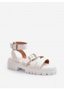 Sandales pour femmes en cuir écologique. Montées sur une plateforme et un talon plat, elles assurent stabilité et confort lors de la marche. Fermées par une bride réglable à boucle, elles garantissent un ajustement parfait au pied. De plus, la semelle intérieure souple rend les longues promenades confortables et agréables. Idéales pour les journées d'été et les sorties en soirée !