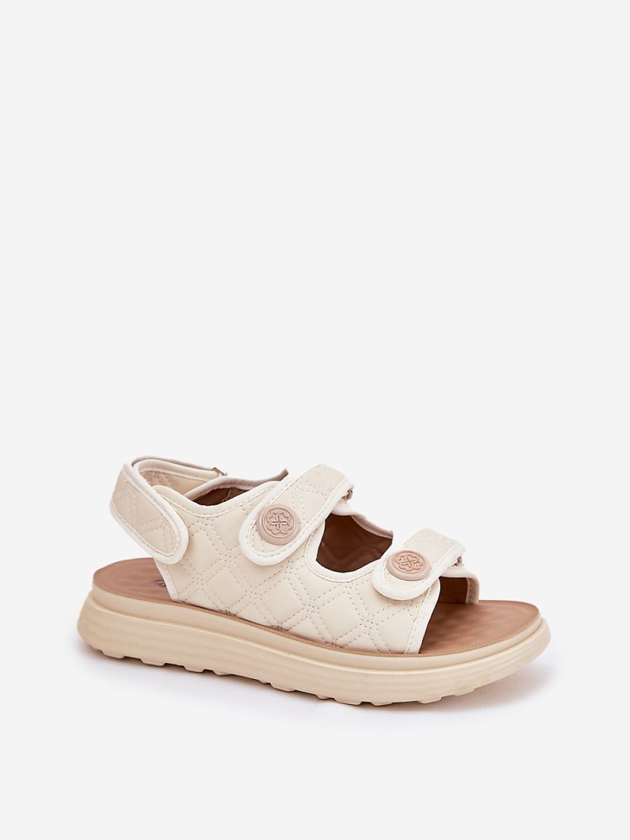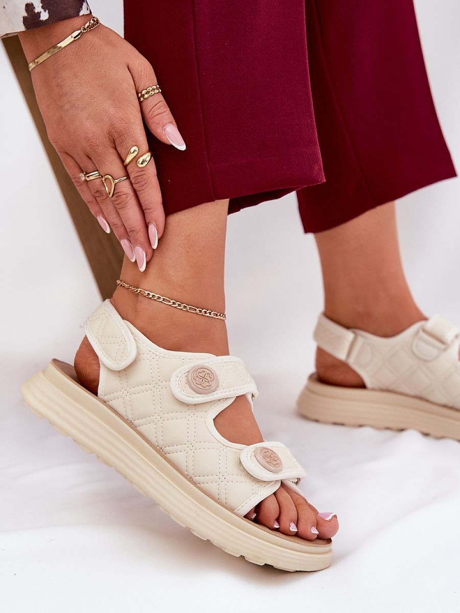 Sandales élégantes pour femmes en simili cuir. Montées sur une plateforme pour un confort et un look à la mode. Fermeture à trois bandes velcro pour un ajustement parfait. Les détails décoratifs leur donnent un caractère unique. Parfaites pour l'été, elles se marient parfaitement avec des robes d'été, des jupes et des pantalons, ajoutant à chaque tenue légèreté et style à la mode.
