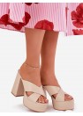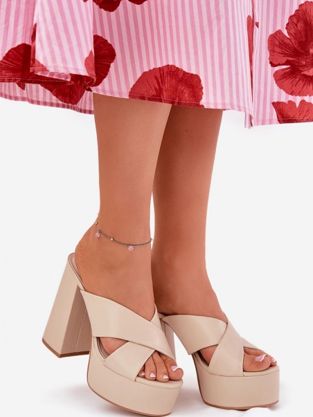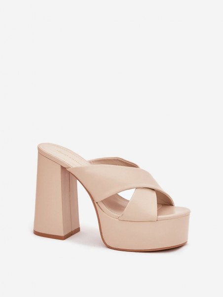 Mules femme en similicuir. Deux sangles entrelacées à l'avant. Montées sur un talon haut et une plateforme, elles offrent confort et stabilité tout en ajoutant de la légèreté à la silhouette. Parfaites pour les jours d'été, ces mules se marient parfaitement avec des robes, des jupes et des pantalons.