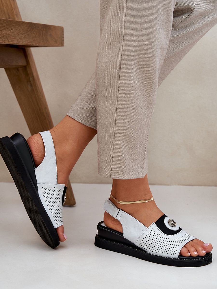 Les sandales de la marque Jezzi. Fabriquées en cuir écologique, c'est une élégante proposition pour les jours chauds. Montées sur un talon compensé, elles offrent confort et stabilité. Fermées par une fermeture Velcro, elles permettent un ajustement facile au pied. Un petit détail décoratif à l'avant leur ajoute un charme subtil, soulignant leur caractère élégant. Ces sandales seront un excellent choix pour les tenues estivales, alliant confort et allure à la mode.
