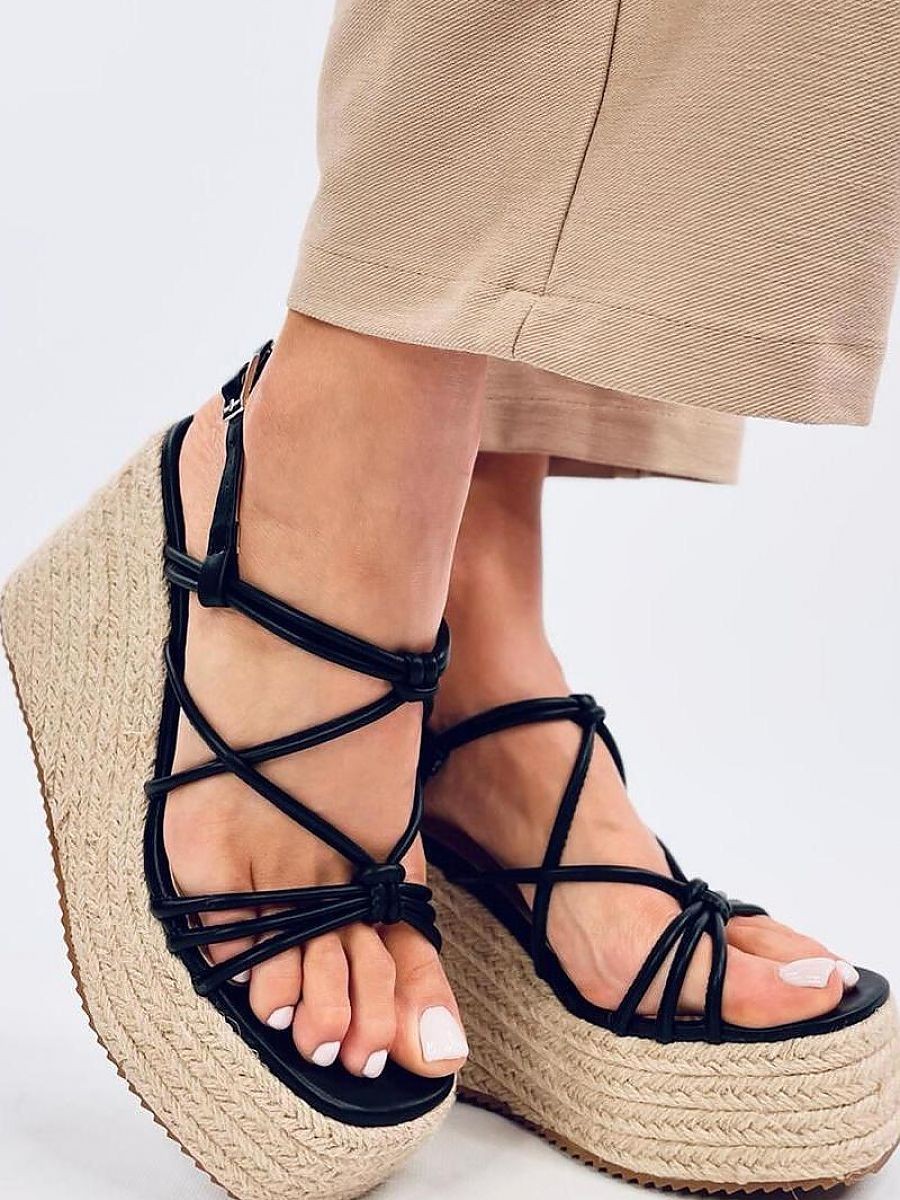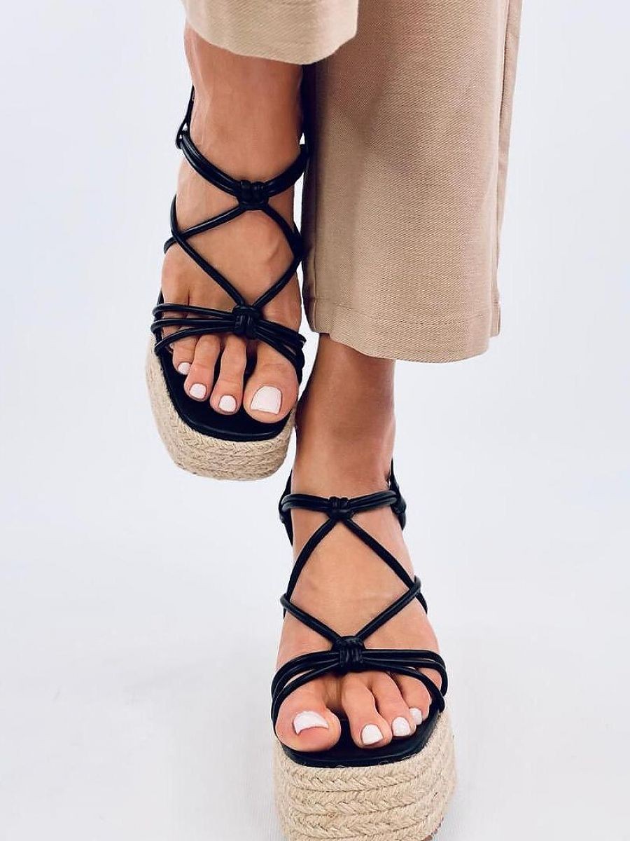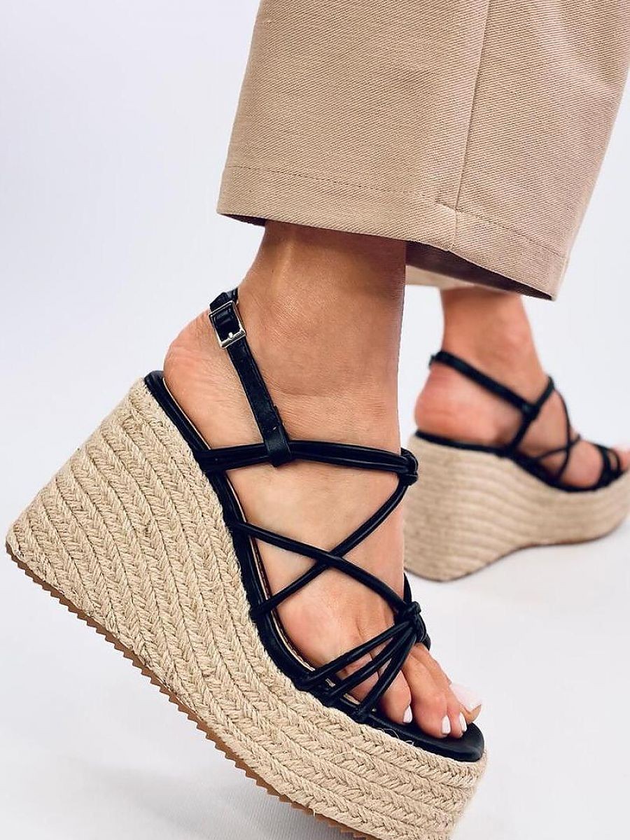 Sandales - espadrilles pour femmes sur une plateforme d'une hauteur de 11 cm. La plateforme de 4,5 cm, à la fois tendance et stable, est un avantage inestimable. Les lanières entrecroisées font qu'il est impossible de les quitter des yeux.... N'attendez pas et commandez-les dès aujourd'hui : ) Matière extérieure ? cuir écologique.