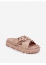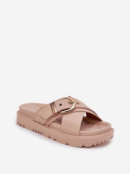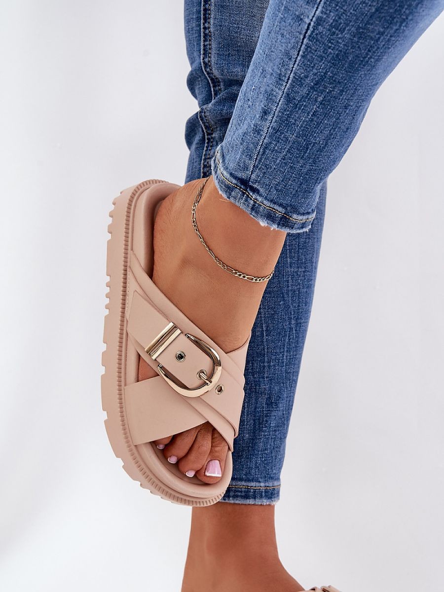 Les sandales à plateforme en simili cuir sont une proposition à la mode et confortable pour les jours chauds. À l'avant, il y a deux larges brides croisées qui ajoutent un caractère moderne. La grande boucle sur la bride attire l'attention, donnant un style distinctif. Ces sandales allient confort et design élégant, s'adaptant parfaitement aux tenues estivales.