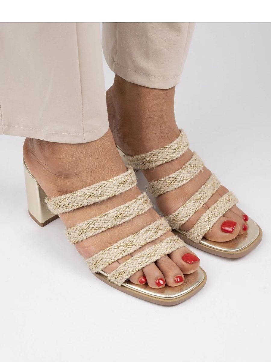 Ces élégantes sandales à talons sont un accessoire exceptionnel pour la garde-robe estivale. Fabriquées à partir de lanières tressées qui ajoutent un charme unique, elles se marient parfaitement avec les tenues quotidiennes. Le talon bloc stable assure un confort toute la journée. L'avant ouvert permet aux pieds de respirer et est un excellent choix pour les jours chauds. La couleur dorée ajoute une finition luxueuse, ce qui en fait un incontournable de la saison Golden.
