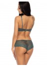 Short tentant et séduisant par sa transparence, entièrement composé de dentelle délicate de couleur kaki. Charmes féminins sexuellement enveloppants. Gousset en coton.