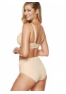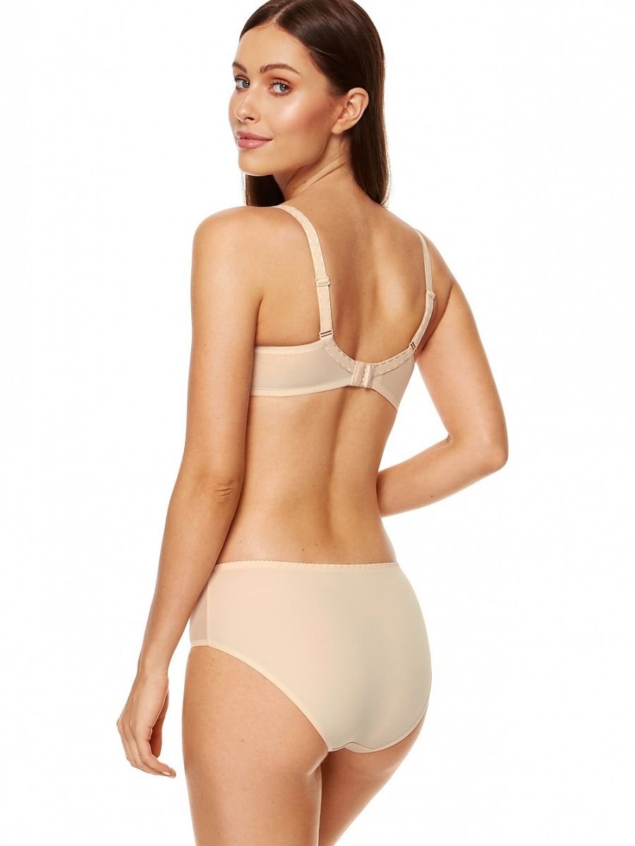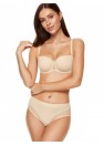 De fines coupes en mousse de corset sont recouvertes à l'extérieur d'un tissu en maille lisse. Un petit nœud décoratif est placé entre les bonnets. La partie intérieure des bonnets est recouverte de coton conforme à la norme OEKO-TEX, ce qui les rend agréables à la peau. Le dos du soutien-gorge est en tulle élastique. Des baleines latérales verticales stabilisent la circonférence du soutien-gorge. Le soutien-gorge a été conçu et cousu en Pologne.