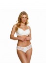 Un beau soutien-gorge en dentelle écru, conçu pour les femmes plus généreusement dotées par la nature. Construction avec deux découpes verticales. Un délicat nœud entre les bonnets ajoute du charme à l'ensemble. Côtés en microfibre écrue, renforcés pour maintenir les poitrines généreuses. Bretelles lisses, réglables, non détachables. La largeur des bretelles et le type de fermoir sont adaptés à la taille du soutien-gorge.