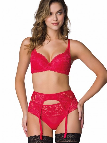 Un soutien-gorge Hannah envoûtant, sexy et élégant. Push-up disponible dans les couleurs : rouge vif, noir profond et blanc immaculé, qui donne une forme naturelle et séduisante à la poitrine. Les bonnets sont entièrement ornés d'une dentelle éblouissante et légèrement brillante qui grimpe le long de la bretelle vers le haut. Le dos en maille élastique renforcé par des baleines verticales. Entre les bonnets, un pendentif bijou qui illumine magnifiquement la lingerie. Un avantage supplémentaire est les coussinets amovibles. Bretelles non détachables avec possibilité de réglage. Fermeture à deux rangées avec réglage en trois étapes.