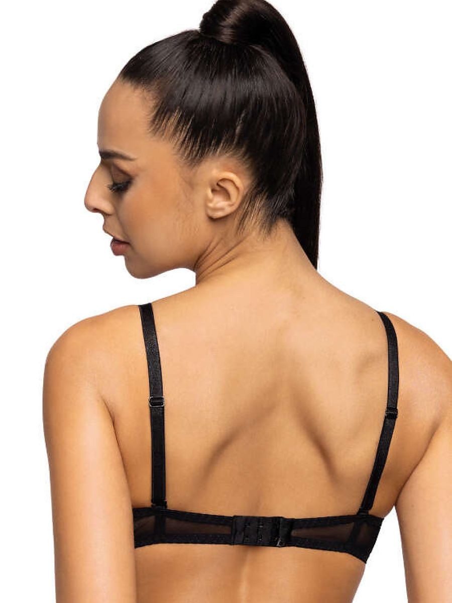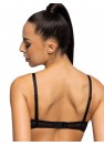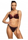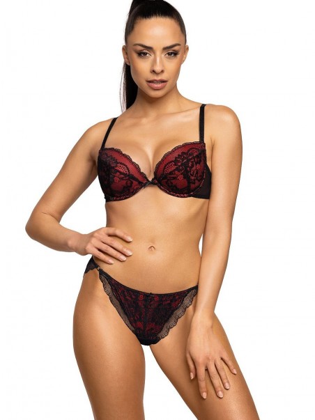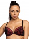 Un soutien-gorge push-up sexy avec une coupe plongeante en noir et rouge. Le modèle fronce parfaitement les seins, donne de la forme et convient aux décolletés profonds. Le soutien-gorge Mollie est composé d'une dentelle noire remarquable qui épouse parfaitement la forme de la poitrine. L'intérieur du bonnet est doublé de mousse corsetée rouge. Le dos est fait d'une délicate maille élastique. Bretelles réglables et amovibles. Fermeture à deux rangées de crochets et d'œillets avec réglage en trois étapes.