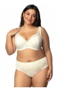 Soutien-gorge Natalie Big non conventionnel. Disponible en grandes tailles. Souligne joliment le décolleté et fronce parfaitement la poitrine. Grâce à une large bretelle décorative, il permet de dissimuler l'asymétrie des seins. Les bonnets sont en dentelle fine, qui enveloppe les seins de manière sexy et remonte doucement le long de la bretelle. Les bonnets galbés reposent sur une bavette et un dos en dentelle, renforcés par une maille élastique. Bretelles réglables et inamovibles. Fermeture à deux rangées de crochets et d'œillets avec réglage en trois étapes.