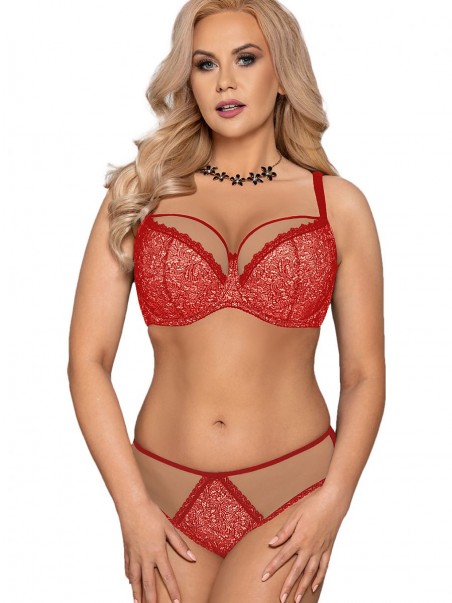 Un magnifique soutien-gorge semi-coussiné, cousu sur une nouvelle construction. Recouvre et maintient parfaitement la poitrine, en dentelle, plen et mousse. Petit nœud rouge au milieu. Bretelles larges et non amovibles.