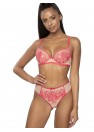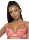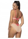 Soutien-gorge Frances doux, élégant et unique en beige et rose. Les bonnets, qui soutiennent parfaitement la poitrine, sont ornés de dentelle rose. Le haut des bonnets est en tissu élastique délicat, bordé d'un ruban de coton doux. Le dos est fait de double tissu élastique. Bretelles non amovibles et réglables. Fermeture à deux ou trois rangées (selon la taille) avec ajustement sur trois niveaux.