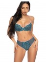 Remarquable et élégant soutien-gorge souple Sybilla en turquoise. Les bonnets épousent parfaitement le buste et sont garnis de dentelle turquoise. Le haut des bonnets est constitué d'une délicate maille élastique, dont le bord est bordé d'une bande de coton doux. Nœuds décoratifs entre les bonnets et sur les bretelles. Dos en double maille élastique. Bretelles réglables sans bretelles. Crochets à deux ou trois rangées (selon la taille) avec réglage en trois étapes.
