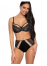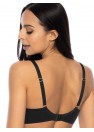 Élégant et sensuel soutien-gorge Marion soft en noir et beige. Bonnets garnis d'une délicate dentelle noire. Le haut des bonnets est fait d'une délicate maille élastique, le bord est bordé d'un ruban de coton doux. Entre les bonnets, un nœud et un bijou, des nœuds décoratifs sur les bretelles. Dos en Lycra, bustier, bretelles réglables. Crochets à deux ou trois rangées (selon la taille) avec réglage en trois étapes.