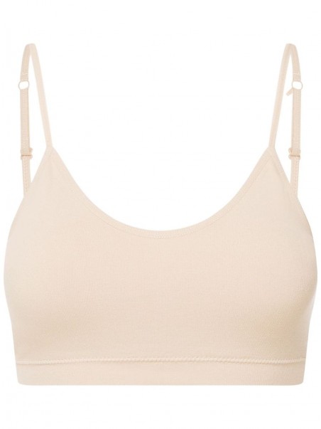 Soutien-gorge moderne sous forme de top élastique, fabriqué en tissu doux à la structure à la mode et côtelée. Modèle enfilé par la tête, sans fermetures, avec bretelles réglables pour un meilleur ajustement. Équipé de coussinets amovibles qui permettent d'adapter le niveau de maintien selon les besoins. Idéal pour un usage quotidien, il assure un confort total et une liberté de mouvement. Produit emballé dans une boîte esthétique, parfait également pour un cadeau.