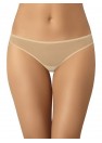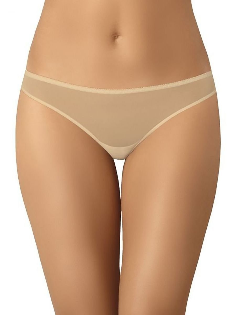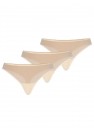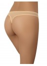 Un trio de tongs classiques pour femmes en beige. Le string est fait d'une maille délicate, montée sur le devant, avec une lanière plus large entre les fesses à l'arrière, enveloppant parfaitement la silhouette. Le string est très confortable à porter et convient à toutes les silhouettes, quelle que soit leur taille. L'ensemble de tongs en beige se portera très bien sous des vêtements blancs, car la couleur se fond avec le teint de la peau.