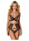 String élégant à la coupe classique. Découpe au dos, le devant est en maille beige et dentelle noire. Dos en maille noire. Les jambes sont terminées par une dentelle délicate.