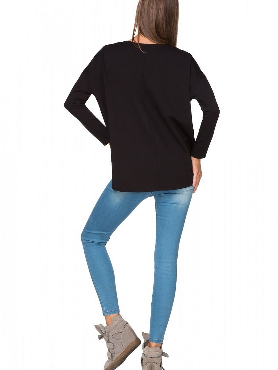 Sweat-shirt confortable en tricot de coton avec une large coupe kimono. Manches longues, encolure bateau. Légèrement allongé à l'arrière.