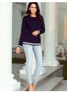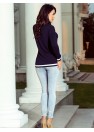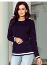 Confortable sweat-shirt bleu marine terminé par des coutures très tendance en blanc et bleu marine. Produit polonais. Marque numoco.