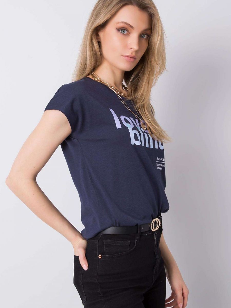 T-shirt pour femme avec des manches courtes et une encolure ronde. Inscription décorative sur le devant.