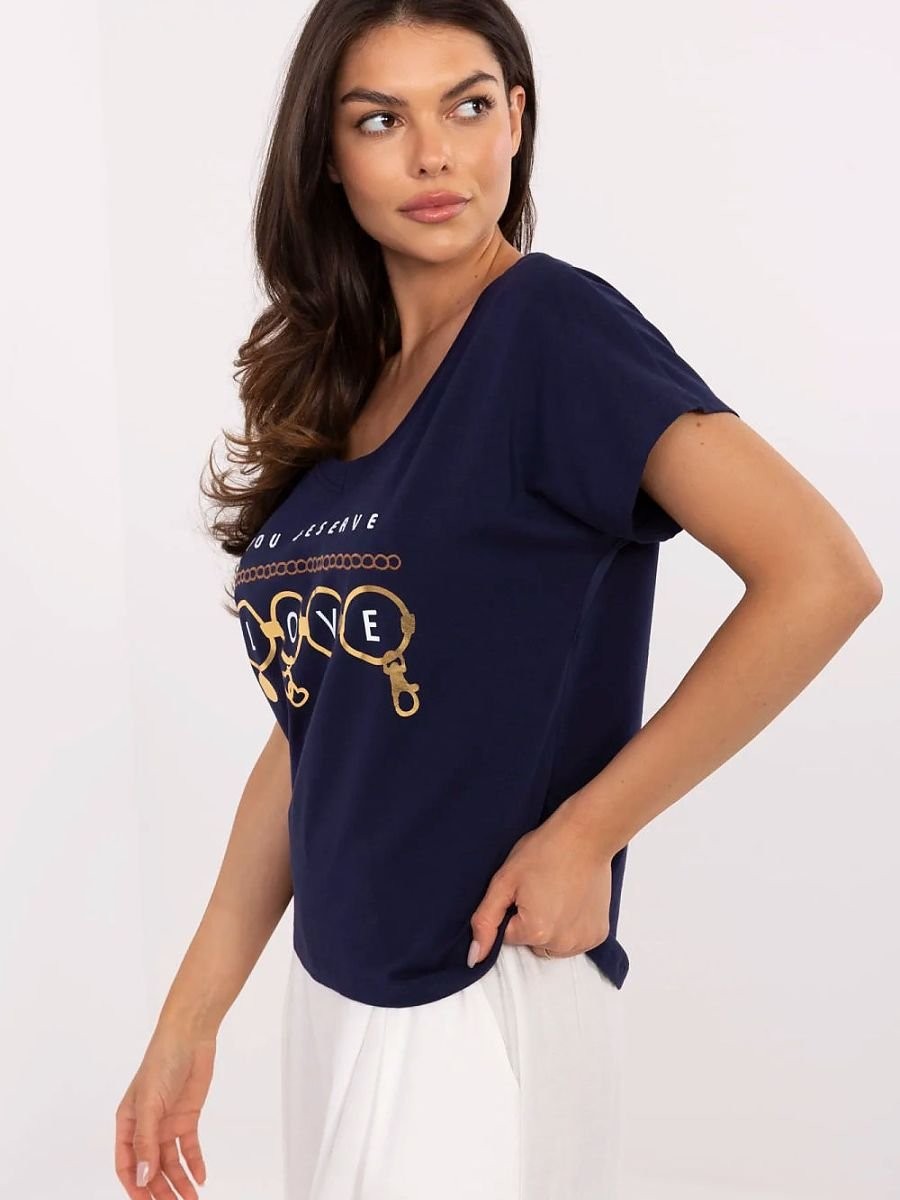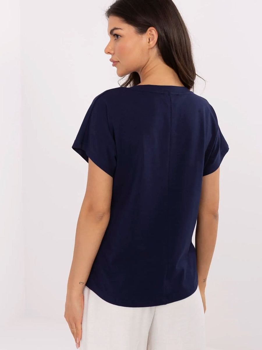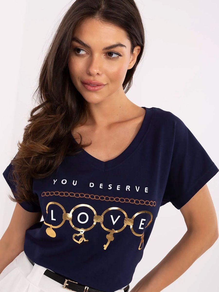 T-shirt casual femme idéal pour tous les jours, alliant confort et finitions tendance. Fabriqué en coton doux avec une touche d'élasthanne, il assure un port confortable et un ajustement léger à la silhouette. Modèle de longueur standard, avec des manches courtes et un décolleté en V féminin, mettant joliment en valeur la ligne du cou. Ce t-shirt se distingue par un mélange impressionnant d'imprimé et de broderie subtile, créant un détail original et élégant. Le choix idéal pour les femmes appréciant un style décontracté avec une touche d'élégance au quotidien.
