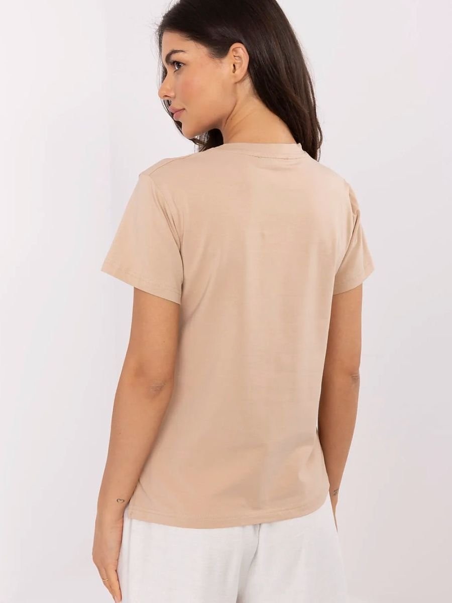 Léger et confortable t-shirt pour femme, idéal pour les occasions quotidiennes. Fabriqué à partir d'un mélange dominant de coton et d'élasthanne, il assure un confort de port et une liberté de mouvement. Modèle de longueur standard, avec des manches courtes et un col rond classique, il s'intègre parfaitement dans des tenues décontractées. Le t-shirt est orné d'une application spectaculaire, des paillettes formant une forme de papillon, qui attirent le regard et donnent un caractère à la mode à l'ensemble. Le motif dominant associé à une impression subtile crée un look intéressant et universel.