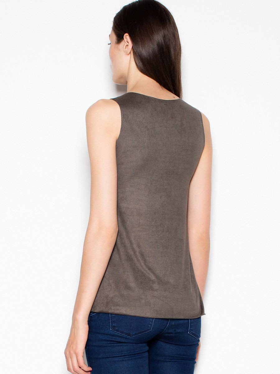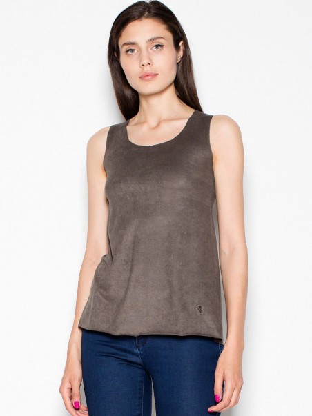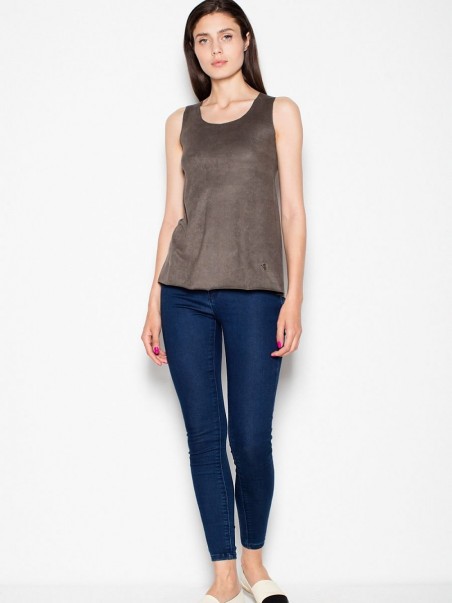Blouse d'épaule en daim léger avec encolure demi-ronde. Modèle ample, idéal pour un style quotidien.
