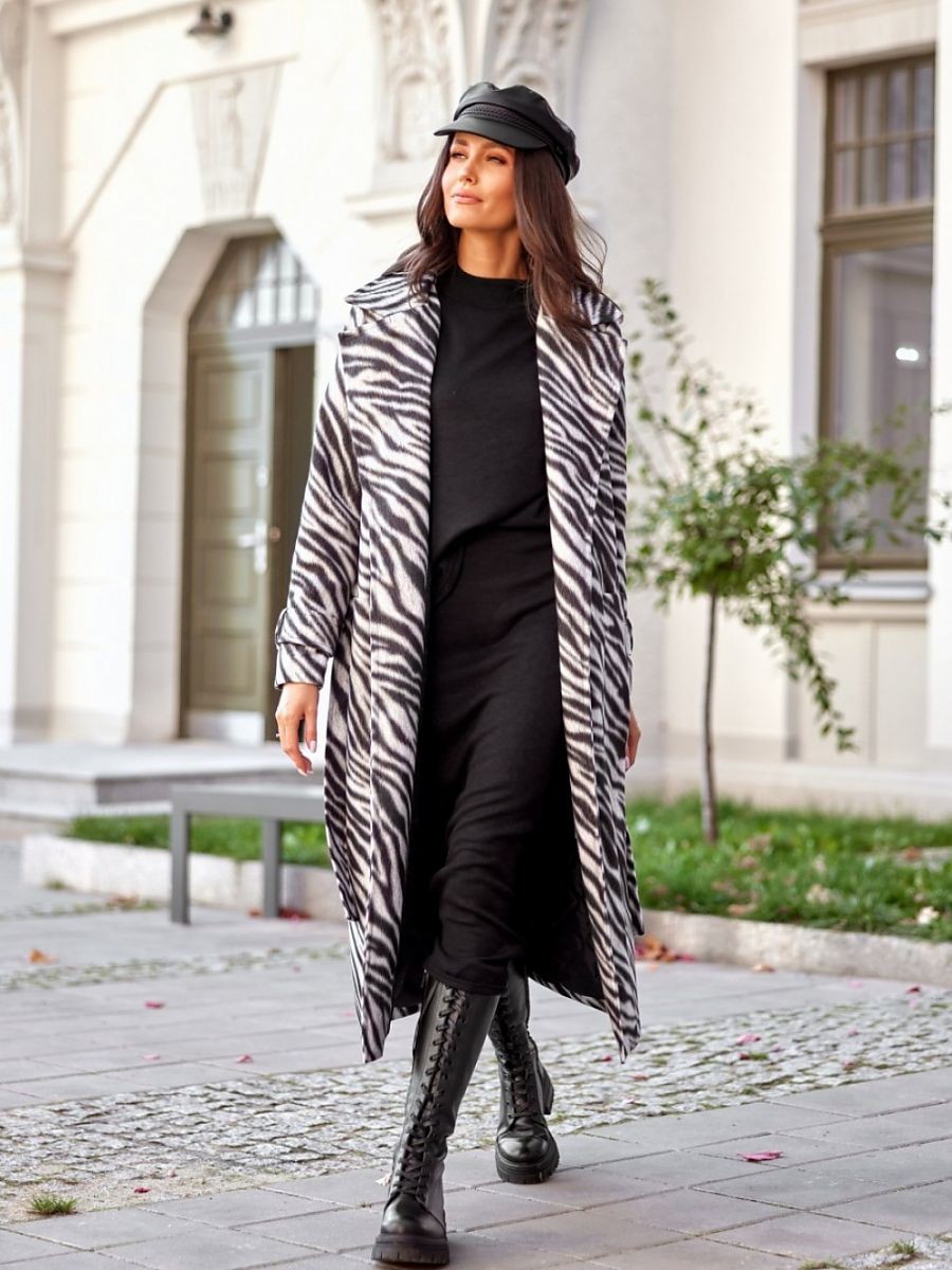 Débordant d'élégance et d'anticonformisme, ce long manteau droit pour femme aux manches longues est enrichi à l'extrémité de rayures décoratives dans la couleur du manteau. Le manteau est doté d'une ceinture à nouer à la taille, et un col très imposant ajoute à son charme. Le manteau a des poches pratiques sur les côtés et une fente à l'arrière au niveau de l'ourlet pour une plus grande liberté de mouvement. Le manteau est doublé. Le manteau sans capuche avec des poches à glissière au niveau des hanches sera parfait pour les frimas de l'automne et de l'hiver. Une proposition très originale à porter au quotidien, avec un jean, une jupe, mais aussi idéale pour une tenue élégante. Le produit est fabriqué et cousu en Pologne.