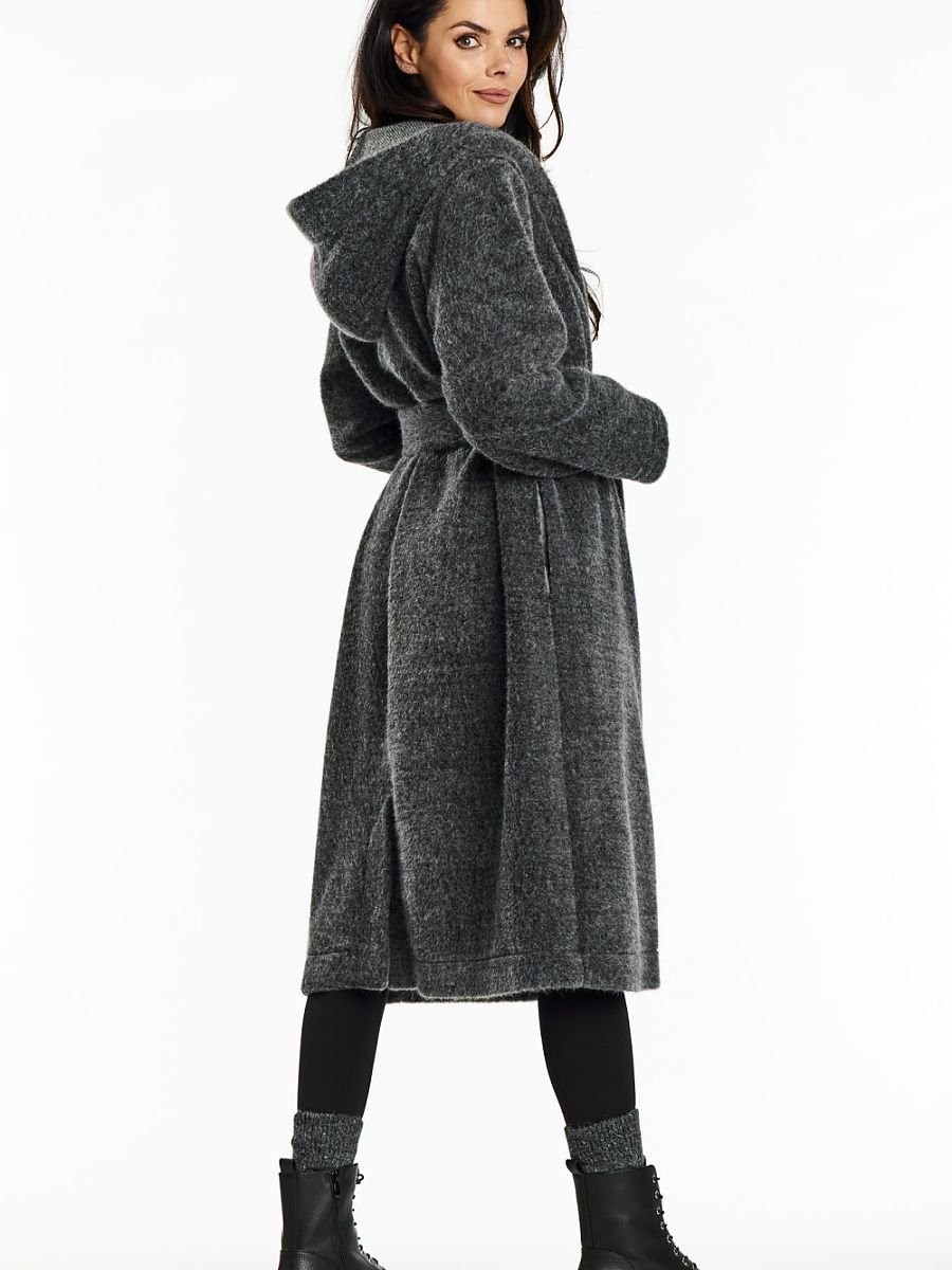 Manteau long à capuche avec fermeture à boutons. Découvrez l'élégance avec le manteau à col châle et capuche de la marque polonaise Awama. Parfait pour l'automne, il allie élégance et style décontracté. Le manteau est doté d'un élégant col châle et d'une capuche, qui apportent une touche de modernité. Léger, non doublé et noué à la taille, il accentue la silhouette féminine. Confectionné dans une maille ourson, il apporte chaleur et confort lors des journées les plus froides. D'un design minimaliste, il convient aussi bien aux sorties décontractées qu'aux occasions formelles.